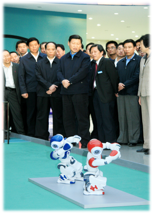 2009年,习近平同志哈工大观看仿人机器人表演。