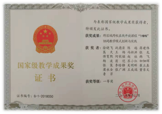 1. 2018年,徐晓飞教授主持的“跨区域跨校在线开放课程1+M+N协同教学模式创新与实践”成果获国家教学成果一等奖
