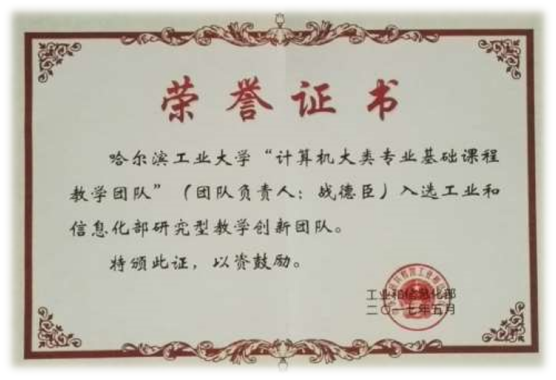 2. 2017年,“计算机大类专业基础课程研究型教学创新团队”获批工业和信息化部2016年度研究型教学创新团队。