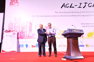 2015年李生教授(时任中国中文信息学会理事长)获得国际计算语言学学会终身成就奖