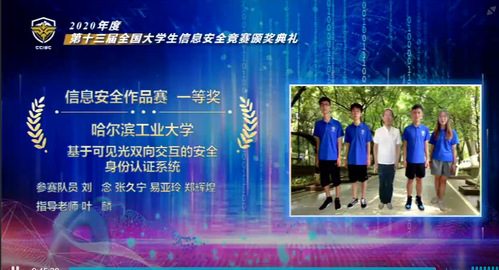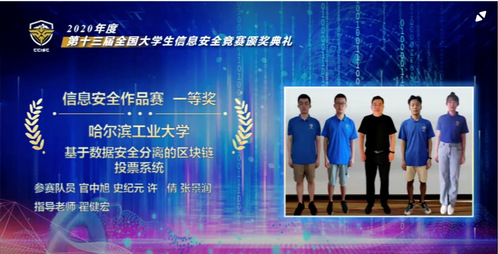 本次信息安全作品赛由北京航空航天大学承办,共有初赛和决赛两部分组成。初赛采用线上提交作品和材料的方式,共选拔出540支队伍进入最后的决赛。由于新型冠状病毒所导致的疫情,今年的决赛采用线上形式,经过答辩和评委们的严格把关,最终,哈工大5支进入决赛的队伍全部获奖,其中3支参赛队伍斩获一等奖、1支参赛队伍斩获二等奖、1支参赛队伍斩获三等奖。叶麟、余翔湛、翟健宏三位老师获得优秀指导教师的称号。