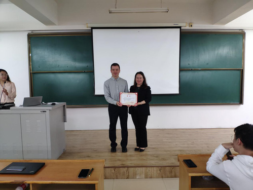 太阳成集团官方网站党委副书记单既阳为张克校友颁发了聘书