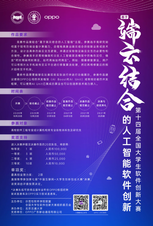 最终作品需要能够在比赛现场实际运行并进行功能展示,参赛作品建议使用OPPO 公司的开发框架(AI Boost 和 AI Unit) 或等同功能的开发框架,可以使用AI Unit 已集成的算法也可以创造新技术能力接入。