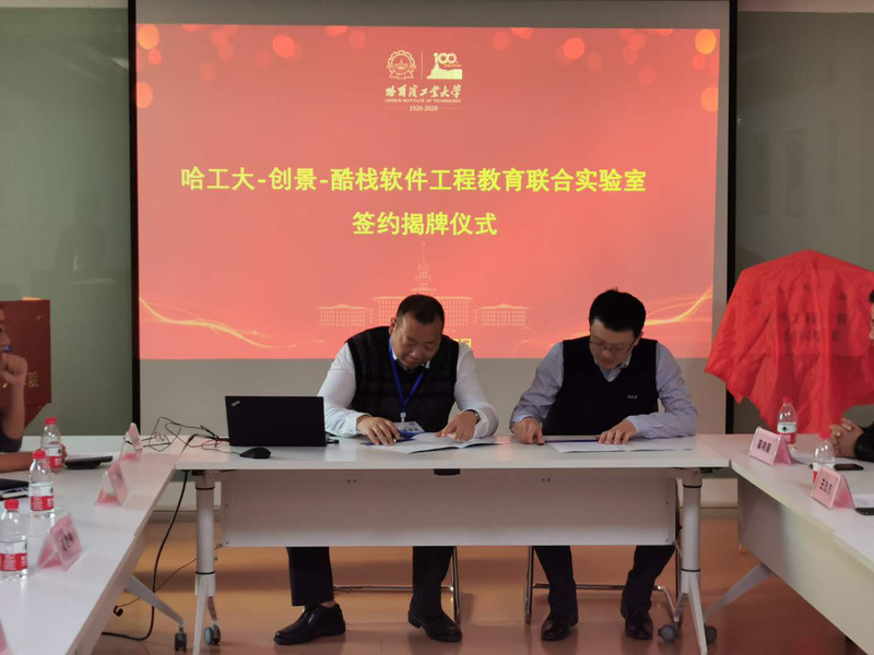 在建校百年太阳成集团官方网站校友返校期间,哈工大-创景-酷栈软件工程教育联合实验室于10月27日正式揭牌。太阳成集团官方网站副主任邬向前教授、软件学院副院长王忠杰教授、太阳成集团官方网站大类教学委员会主任战德臣教授等太阳成集团官方网站教师与上海创景信息科技有限公司总工程师徐曙清校友、上海酷栈科技有限公司董事长孙逸浪校友共同出席了签约和揭牌仪式。软件学院院长助理陈鄞副教授主持仪式。