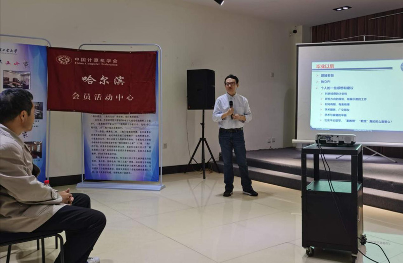 最后,由电子科大邹权教授进行分享,报告题目为《我们一直在路上——毕业十年工作感悟》。邹权教授的报告幽默风趣,娓娓道来,介绍了研究论文的画图和投稿等实用技巧,并以自己的实际体会,解答了博士毕业后是要留在导师团队工作还是成为独立PI、家庭与事业的平衡等问题。现场笑声阵阵,在场的研究生均表示收益匪浅。