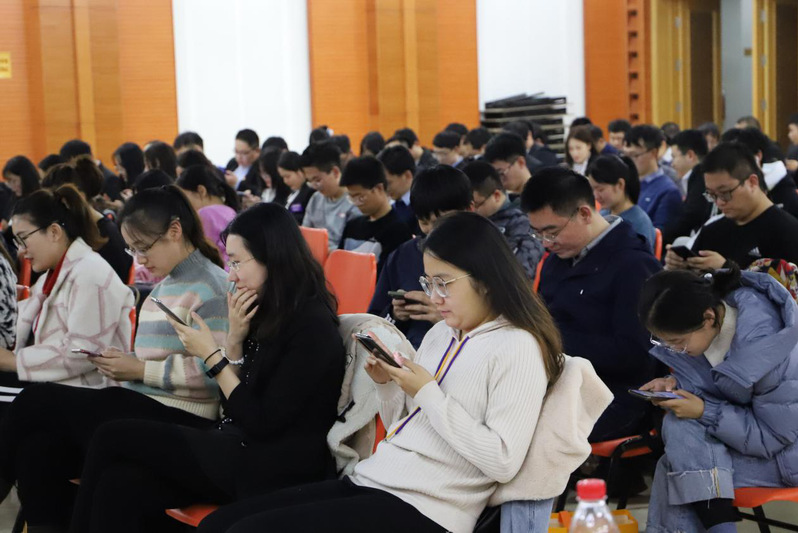 在现场个人赛阶段,全场师生党员们利用学习强国“挑战答题”板块进行个人答题,5分钟内选取答题最好成绩发送到工作人员处,经过统计,最终田笑妍、张宇等10位同志获得个人奖。