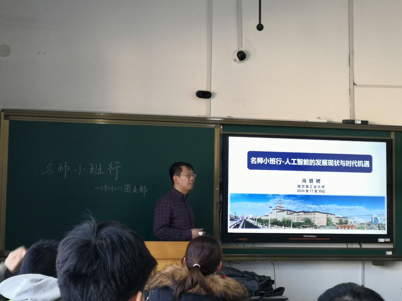 首先,冯老师向同学们分享了他个人的求学科研经历。冯晓骋老师结合他读本硕博不同阶段时的体会,建议同学们积极做好个人规划,早做准备。他提到,作为计算机系的学生,重要的是提升编程的能力,与此同时学好英语,如果学有余力,可以在本科阶段就开始读专业论文。他鼓励同学们,在遇到困难时要坚持住,不放弃,要相信自己,才能达到理想的目标。最后,冯老师结合自己的工作经验,为同学们简要介绍了人工智能的发展现状与时代机遇。他提到,目前人工智能领域快速发展,而中国水平和世界水平总体上差距不小。他鼓励同学们树立远大的理想,以哈工大为平台,认真学习知识,努力成长进步,成为新时代国家和社会需要的人才。