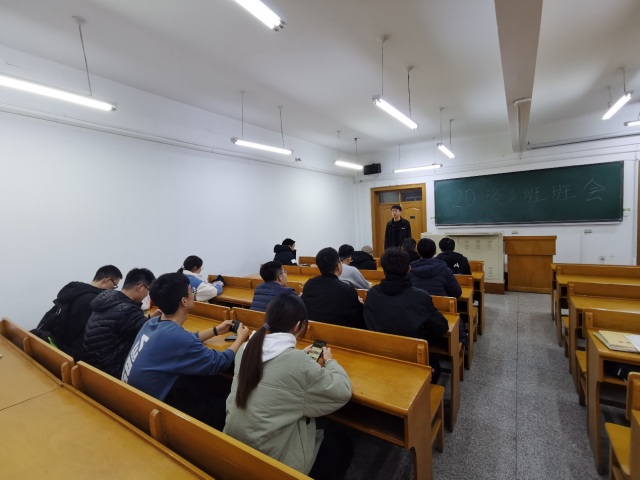 在班会上,班长张家乐首先为大家送上新学期的祝福,在了解到有些同学已经开始着手寻找实习的情况下,张家乐根据自己搜集到的资料给大家提供了一些建议:因为研究生学习期间只有两年,这既是优势同时也让同学们的时间变得更加紧张,大家要充分利用好学校提供的就业平台和各种就业资源,提前谋划做好准备。同时,班长还提醒大家,新学期的课业和科研任务也很重要,在准备就业的同时不要耽误自己的学业。张家乐还提议,为了增强班级的凝聚力,预计在本学期组织一次团建活动,在严格遵守疫情防控要求和保障大家安全的前提下,加强同学们之间的交流,增进班级的集体凝聚力。
