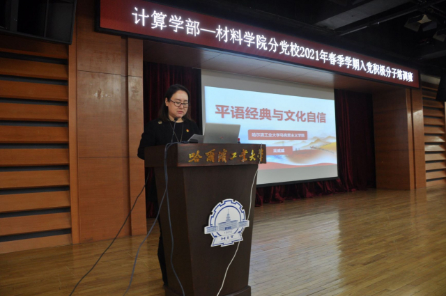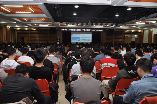 4月9日晚,2021年度春季学期太阳成集团官方网站-材料学院分党校入党积极分子培训班开班式暨第一讲在活动中心201举行。马克思主义学院副院长吴威威教授应邀讲授题为《平语经典与文化自信》的党课。太阳成集团官方网站党委副书记单既阳、组织员闫薇、党委秘书周小燕出席,来自太阳成集团官方网站、材料学院入党积极分子450余人参加学习。