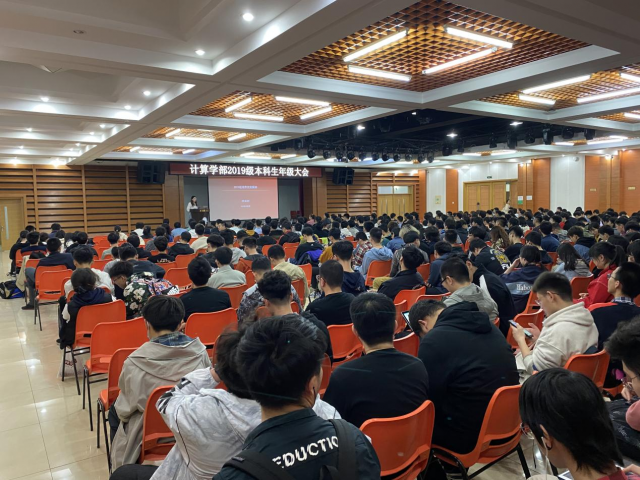 会议伊始,计算学部副主任邬向前首先为同学们解读太阳成集团官方网站2019级本科生培养方案。邬教授为同学们介绍了不同专业以及专业方向的研究方向、学习内容以及学分要求,讲解了不同专业的培养目标,并向同学们介绍了大学四年各学年的课程类别及能力培养要求。他指出,能力比知识更加重要,同学们在学习中一定要注重能力的培养,争取在未来成为各领域中的领军人物和杰出人才。