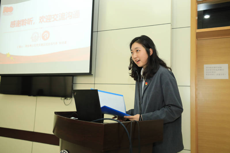 杨语晨同学以“让青春在奉献中焕发绚丽光彩”为题,分享了学习习近平总书记关于青年工作重要论述的心得体会,并表示要牢记习近平总书记贺信精神和习近平总书记考察清华大学时对广大青年提出的殷切期望,担当起当代青年的责任与使命。