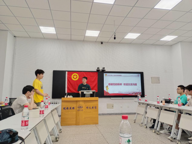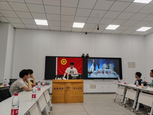 活动伊始,由陆任驰同学讲授团课“以史为镜·话青春”,与同学们共同回顾党史,感悟思想伟力,以史为镜体会真理力量。他指出,要学习党史中体悟中国共产党创业之不易,以及中国共产党的百年征程中,青年人的担当与奉献的力量,由此引出当代青年如何在新时代担当责任与使命问题。他带领同学们认真学习精神谱系,传承红色基因,坚定理想信念,并表示作为一名新时代青年将时刻牢记习近平总书记嘱托,不忘科学报国初心,牢记科技强国使命,把党性融进我们血液中,将青春写在祖国大地上!
