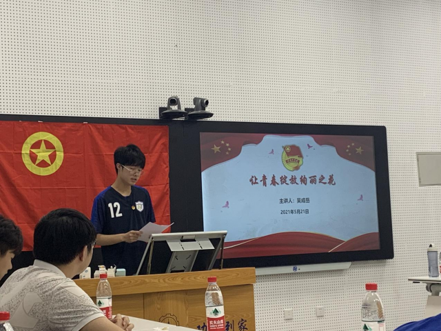 随后,由吴成岳同学讲授微团课“让青春绽放绚丽之花”同学们共同学习了5月4日人民日报发表署名文章《让青春在奉献中焕发绚丽光彩——习近平总书记关于青年工作重要论述综述》他指出,要把青年的理想信念放在“中国梦”中,把青年的历史使命放在“中华民族伟大复兴战略全局”中,把青年的责任担当放在“世界百年未有之大变局”中,让青春在为祖国、为人民、为人类的不懈奋斗中绽放绚丽之花。