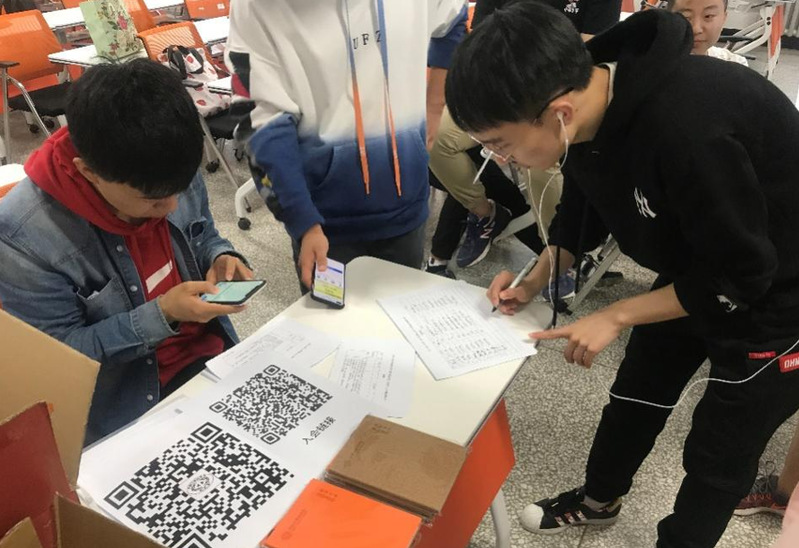 通过前任主席丁小欧和现任主席梁志宇的精彩介绍,多位到场的同学现场扫码入会。