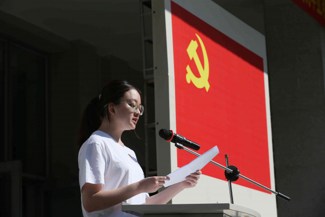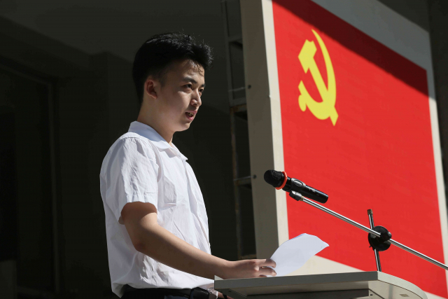 接着,毕业生党员代表高烁琳和新党员代表秦海滨先后发言,讲述了自己对于共产党人责任、使命和担当的认识,阐释了什么是哈工大人的忠诚报效,充分展示了哈工大计算学子昂扬进取的精神风貌,表达了对党的坚定信念和投身建设网络强国、制造强国、航天强国的决心。