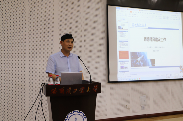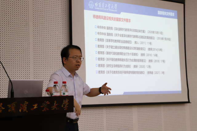 赵义军同志全面系统地介绍了国家、教育部关于师德师风建设的要求,对《新时代高校教师职业行为十项准则》《研究生导师指导行为准则》《关于高校教师师德失范行为处理的指导意见》以及校内相关制度逐一进行解读,继而介绍了我校关于师德师风建设的具体措施,并通过分析师德失范警示案例,提出了预防师德失范行为的策略,报告旁征博引,内容翔实,案例生动,使与会人员受益匪浅,也清楚地了解作为一名高校教师的底线与红线。