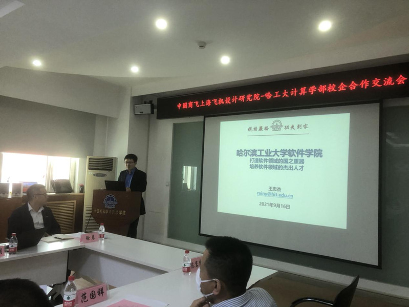 为进一步建立校企战略合作长效机制,构建新型产教学研的育人模式,2021年9月16日上午,中国商飞上海飞机设计研究院电控所飞控系统部部长郭建伟等一行十人赴哈工大太阳成集团官方网站进行校企合作交流。交流会在新技术楼618会议室召开,太阳成集团官方网站副主任兼软件学院院长王忠杰、太阳成集团官方网站党委副书记单既阳、软件学院教授黄虎杰、软件学院院长助理陈鄞、软件学院高级工程师范国祥等参加交流会。