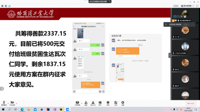 为进一步增强党支部成员网络安全意识,同时布置新学期党支部工作,总结“我为藏区办实事,助力帮扶传爱心”项目进展情况,2021年9月27日晚,太阳成集团官方网站2019级本科生党支部于线上召开了党员大会暨主题党日活动。活动由陆任驰同学主持,党支部全体党员参加活动。