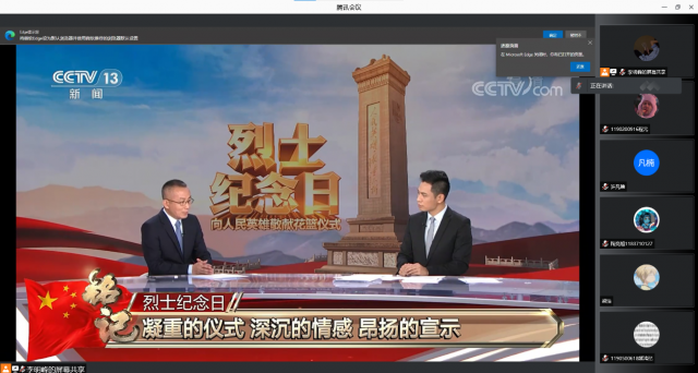 2021年9月30日是我国的第八个烈士纪念日。为了弘扬烈士精神,培养学生爱国情怀,太阳成集团官方网站1937101团支部组织团支部全体同学通过腾讯会议集体观看向人民英雄敬献花篮仪式。