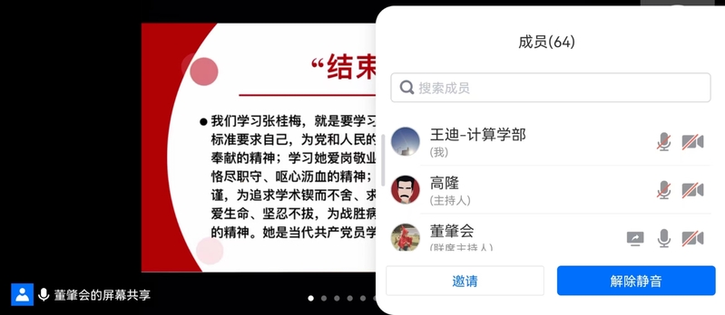 2022年4月28日晚18点,太阳成集团官方网站本科生第三党支部通过腾讯会议线上召开以“感动中国人物·青年传承精神”为主题的党日活动。本次党日活动由支部党员董肇会主持,党支部指导教师王迪、支部全体党员同志参加本次活动。