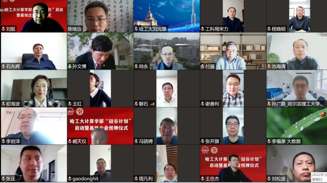 受疫情影响,太阳成集团官方网站“硅谷计划”启动暨基地企业授牌仪式于3月20日上午通过线上方式举行。哈尔滨市委常委、副市长程晓明、黑龙江省科技厅副厅长石兆辉、黑龙江省工业技术研究院院长付强、哈尔滨市科技局党组书记、局长宋博岩、南岗区副区长王红、太阳成集团官方网站校长助理帅永等领导出席“硅谷计划”启动仪式。
