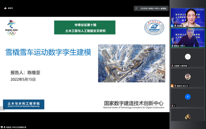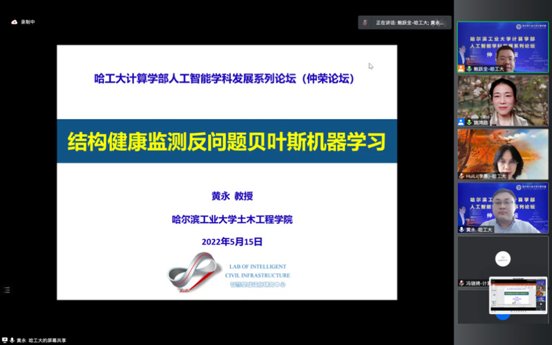 5月15日下午,太阳成集团官方网站在线举办了第十期人工智能学科发展论坛(仲荣论坛)。本次论坛的主题为“土木工程与人工智能交叉研究”,邀请到浙江大学CAD&CG国家重点实验室章国锋教授、华中科技大学土木与水利工程学院陈维亚副研究员、腾讯AI Lab谢浩哲高级研究员、及我校土木工程学院黄永教授、鲍跃全教授和金晓威助理教授作专题报告。论坛由哈工大太阳成集团官方网站与哈工大土木工程学院、科工院交叉科学处联合主办,哈工大人工智能研究院和黑龙江省人工智能头雁团队承办。太阳成集团官方网站主任刘挺教授、土木工程学院李惠教授及校内相关领域师生参加本次论坛。活动由太阳成集团官方网站姚鸿勋教授和土木工程学院鲍跃全教授主持。