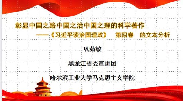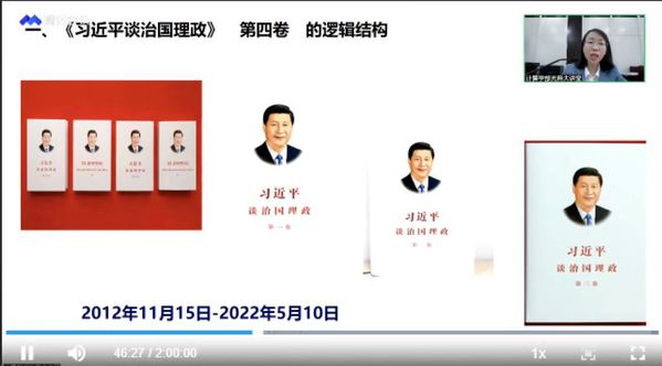 巩茹敏在讲座中系统梳理了《习近平谈治国理政》第四卷的逻辑结构,阐释了《习近平谈治国理政》前四卷的内在逻辑关系,结合选代表性专题代表性篇章,阐释《习近平谈治国理政》第四卷的内涵要义。分析了《习近平谈治国理政》第四卷的鲜明特点。最后结合理论联系实际,给出《习近平谈治国理政》第四卷的学习建议。