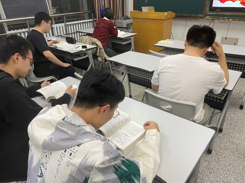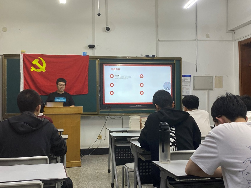 组织生活会开始,首先由党支部书记罗霆介绍本次专题组织生活会流程,由罗霆带领大家学习关于党的二十大精神和习近平新时代中国特色社会主义思想的相关知识,了解“习近平新时代中国特色社会主义思想”的主要内容与重要意义。在讲解过后,支部成员集体进行理论学习,各位成员依次领取了学习材料,在文字中学习思想,提高党性修养。