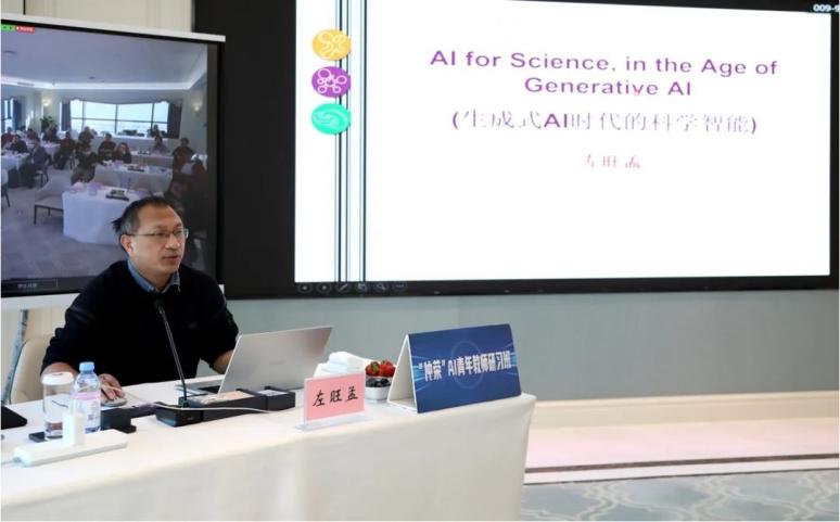 太阳成集团官方网站左旺孟教授以“生成式AI时代的科学智能”为题,为学员介绍了AI for science,生成式AI(自监督、LMM与扩散模型),预训练模型在不同学科领域的应用,面向具体学科领域的基础模型等内容。