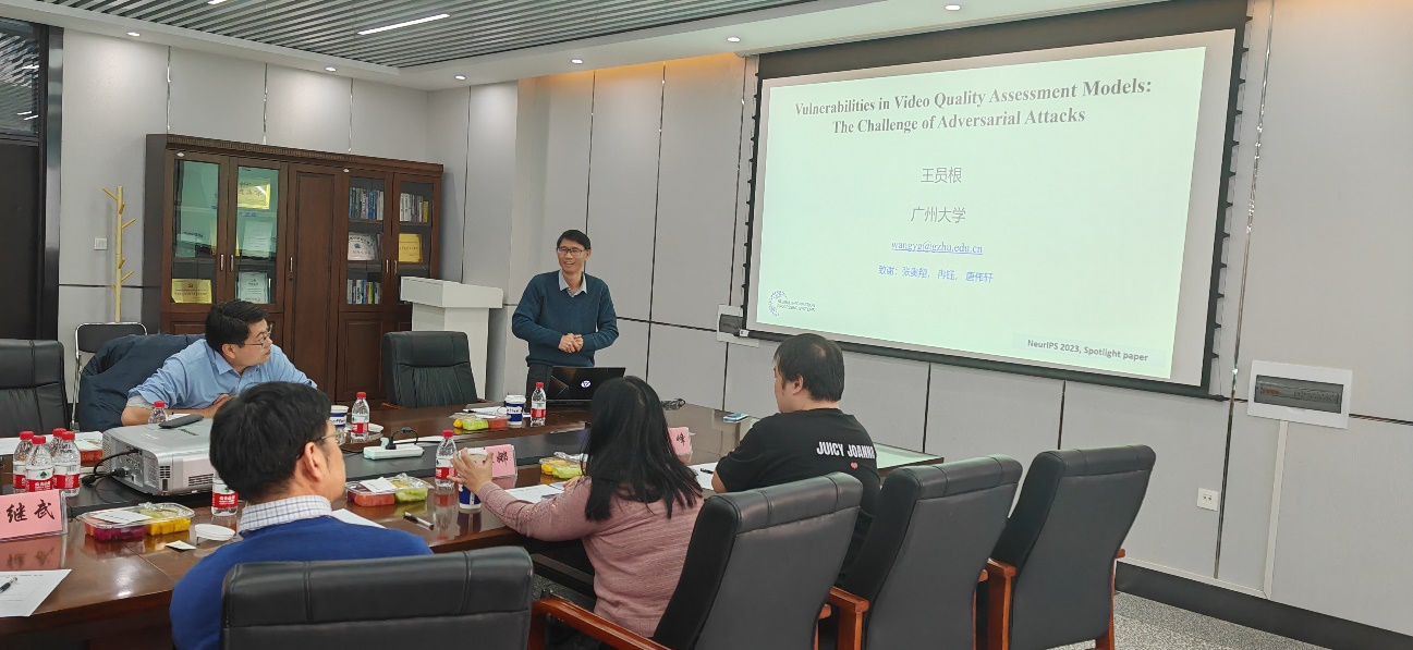 王员根教授作了题为《Vulnerabilities in Video Quality Assessment Models: The Challenge of Adversarial Attacks》的报告。无参考视频质量评估(NR-VQA)在提高最终用户的观看体验中发挥着至关重要的作用。为了构建一个可靠和实用的评估系统,评估基于卷积神经网络和Transformer的NR-VQA模型的鲁棒性至关重要。报告讲述了视频质量评估模型对黑盒对抗攻击的脆弱性,并介绍了一种用于黑盒攻击的基于补丁的随机搜索方法。