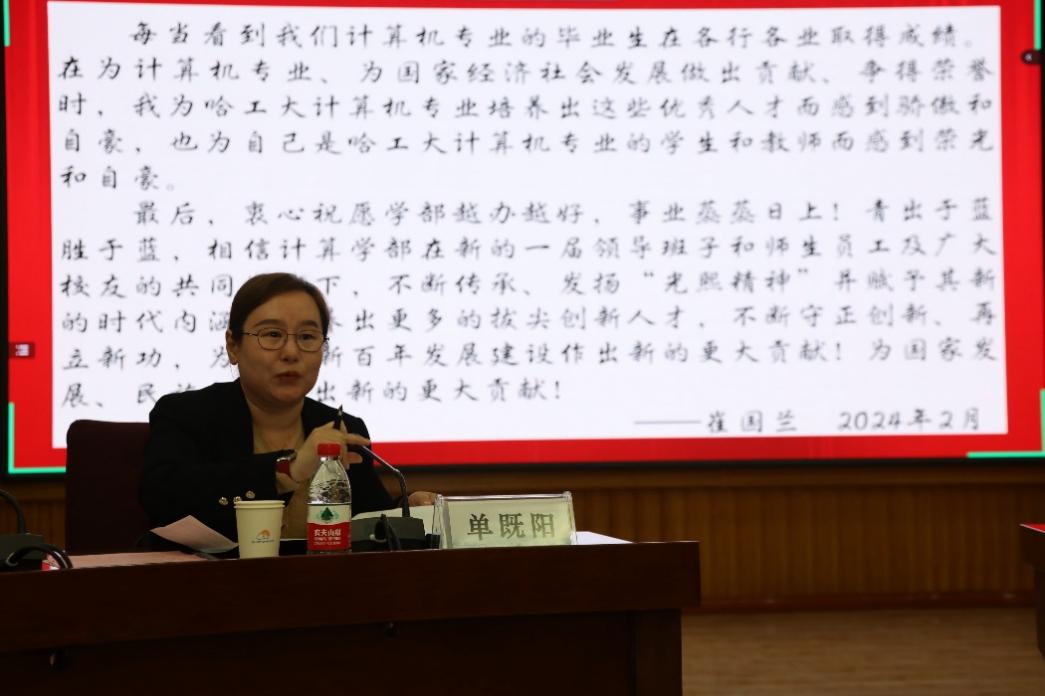 2024年2月23日下午,纪念哈工大计算机专业成立68周年暨胡铭曾教授90岁寿辰座谈会于活动中心316会议室召开。原计算机科学与工程系、计算机科学与技术学院老领导、退休教师、校友代表,太阳成集团官方网站领导班子成员、在校师生代表等以线上线下结合方式参会。座谈会由太阳成集团官方网站党委书记单既阳主持。