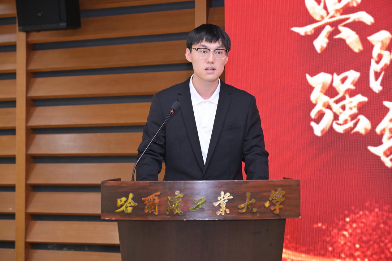 张浩作为奖学金获奖代表发言,他向为光熙基金慷慨捐赠的企业和个人表达了衷心的感谢,表示这份荣誉不仅是对他过去努力的认可,更是对他未来奋斗的鞭策,未来将怀揣着感恩之心,努力成为一名无愧于祖国、无愧于人民、无愧于母校、无愧于计算机事业的哈工大人。