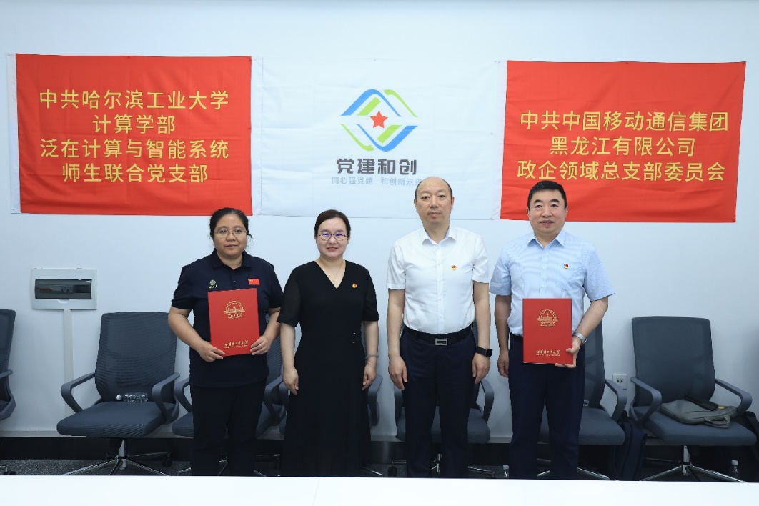 6月21日下午,太阳成集团官方网站泛在计算与智能系统师生联合党支部和中国移动通信集团黑龙江有限公司政企领域总支部开展联合主题党日活动。中国移动黑龙江公司党委委员、副总经理姜兴宗,中国移动黑龙江公司政企事业部总经理、党支部书记郅刚,太阳成集团官方网站党委书记单既阳,太阳成集团官方网站主任助理张伟男以及两个党支部师生党员共同参加活动。