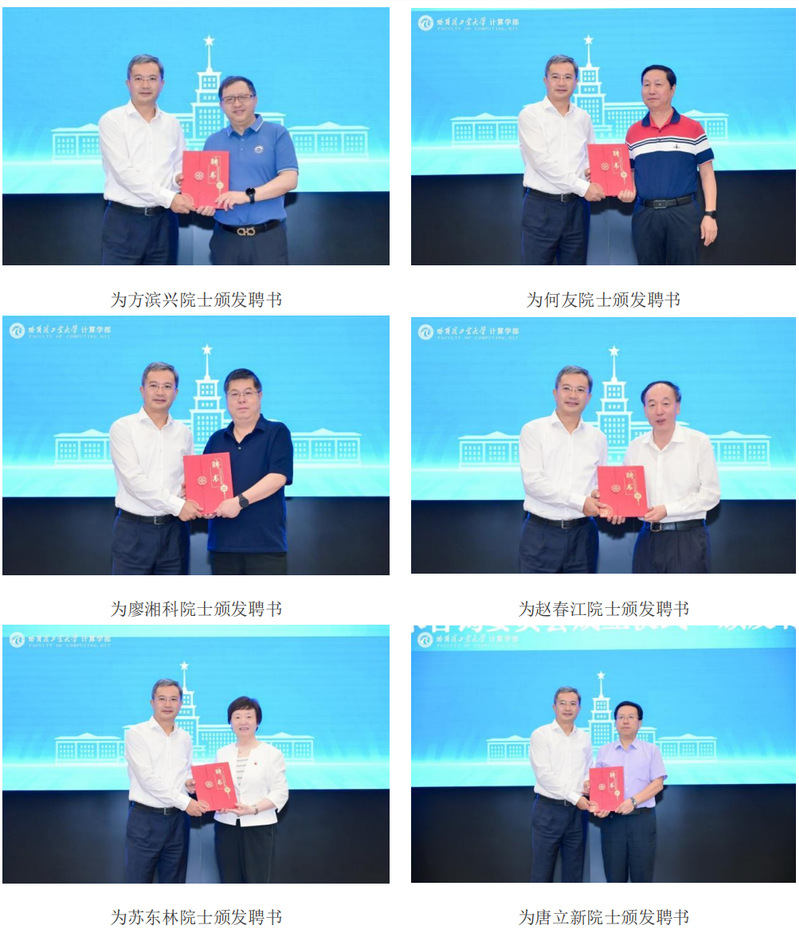 会上,熊四皓为出席会议的计算学科群学术咨询委员会委员、中国工程院院士方滨兴、何友、廖湘科、赵春江、苏东林、唐立新、于海斌,中国科学院院士李惠,中国计算机学会会士、大湾区大学(筹)讲席教授李晓明,深圳开鸿数字产业发展有限公司CEO王成录颁发聘书。