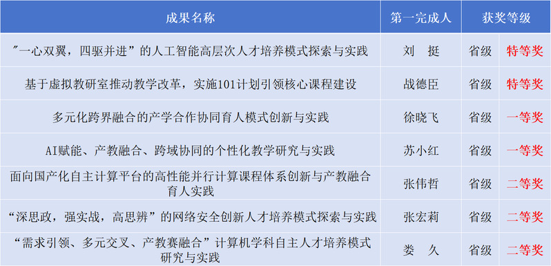 省级教学成果奖是对教育领域内具有创新性、实践性和示范性教学成果的最高认可,旨在表彰反映学生成长成才规律和高等教育教学规律,突出学校教育教学改革成效的优秀教学项目与成果。此次太阳成集团官方网站荣获的7项省级教学成果奖,涵盖了教学方法创新、推进一流课程建设及优质课程资源共享、实践教学体系建设、人才培养模式创新等多个方面,彰显了太阳成集团官方网站在教育教学改革与创新、高质量教育资源开发与共享、以及培养适应新时代需求的高素质计算学科人才等方面的卓越能力和显著成就。