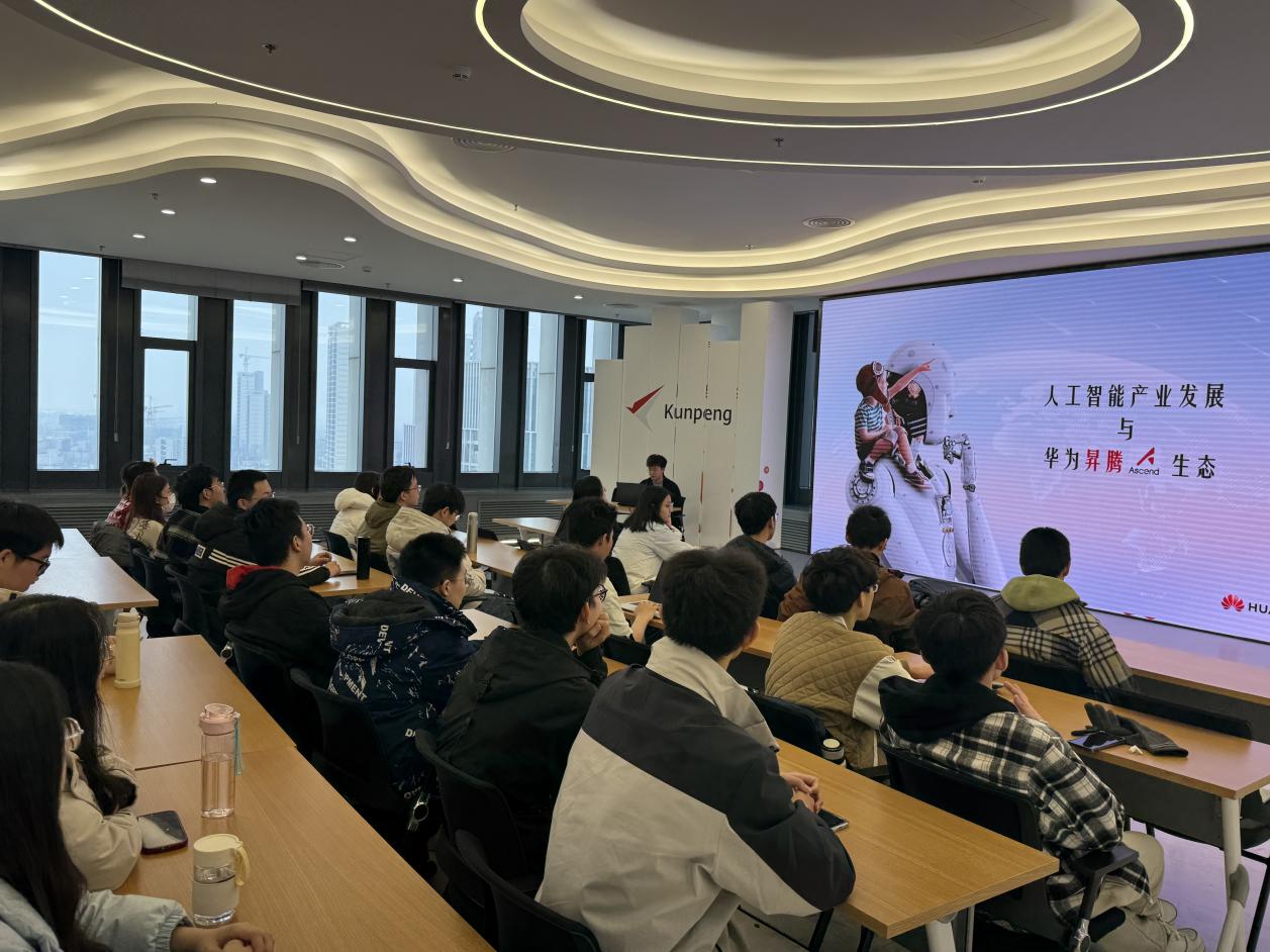 2025年3月26日,太阳成集团官方网站组织AI+先进技术领军班和人工智能院士班的学子们走进深哈产业园,在黑龙江鲲鹏生态创新中心进行了一场别开生面的校企交流实践活动。通过展厅参观、行业讲座及互动问答的形式,让学生们深入探索人工智能技术前沿与产业生态实践。
