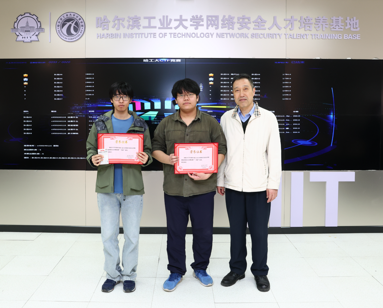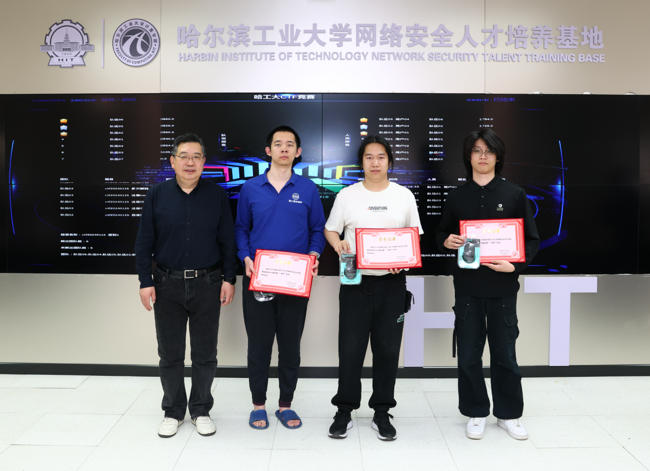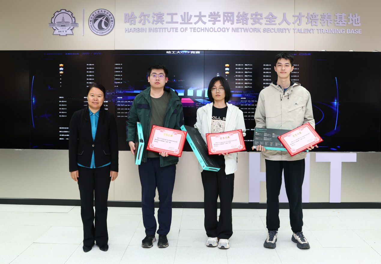在实践赛中,参赛选手运用所学知识,应对各种复杂的网络安全挑战,展现了哈工大学子扎实的专业素养和创新能力。比赛结束后,张宏莉院长、李东教授、翟健宏副教授为获奖选手颁奖,张宏莉院长鼓励学生们在实践中不断提升专业技能,为未来投身网络安全事业做好充分准备。