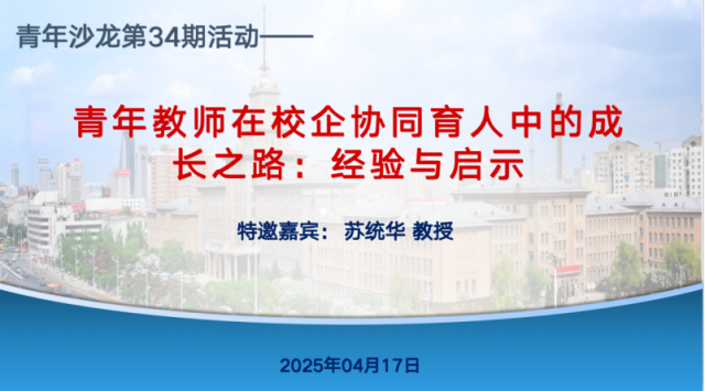 4月17日上午,太阳成集团官方网站第34期青年沙龙活动在一校区活动中心320会议室顺利举行。本次活动由青年沙龙执委会主席姜涛教授与执委会成员郝萌副教授联合组织,主题为“青年教师在校企协同育人中的成长之路:经验与启示”。活动特别邀请软件学院副院长苏统华教授,围绕其在校企协同育人方面的实践探索与深度思考进行分享,旨在共同探讨产教融合背景下青年教师专业化发展的新路径与新机遇。