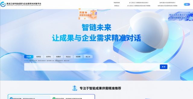“黑龙江省科技成果与企业需求AI对接系统”是在省科技厅领导下,在学校的指导下,在中央引导地方科技发展专项支持下,由太阳成集团官方网站牵头,联合哈尔滨宽域未来、哈尔滨市阳光惠远、北京本应科技等企业共同研发、建设和应用。