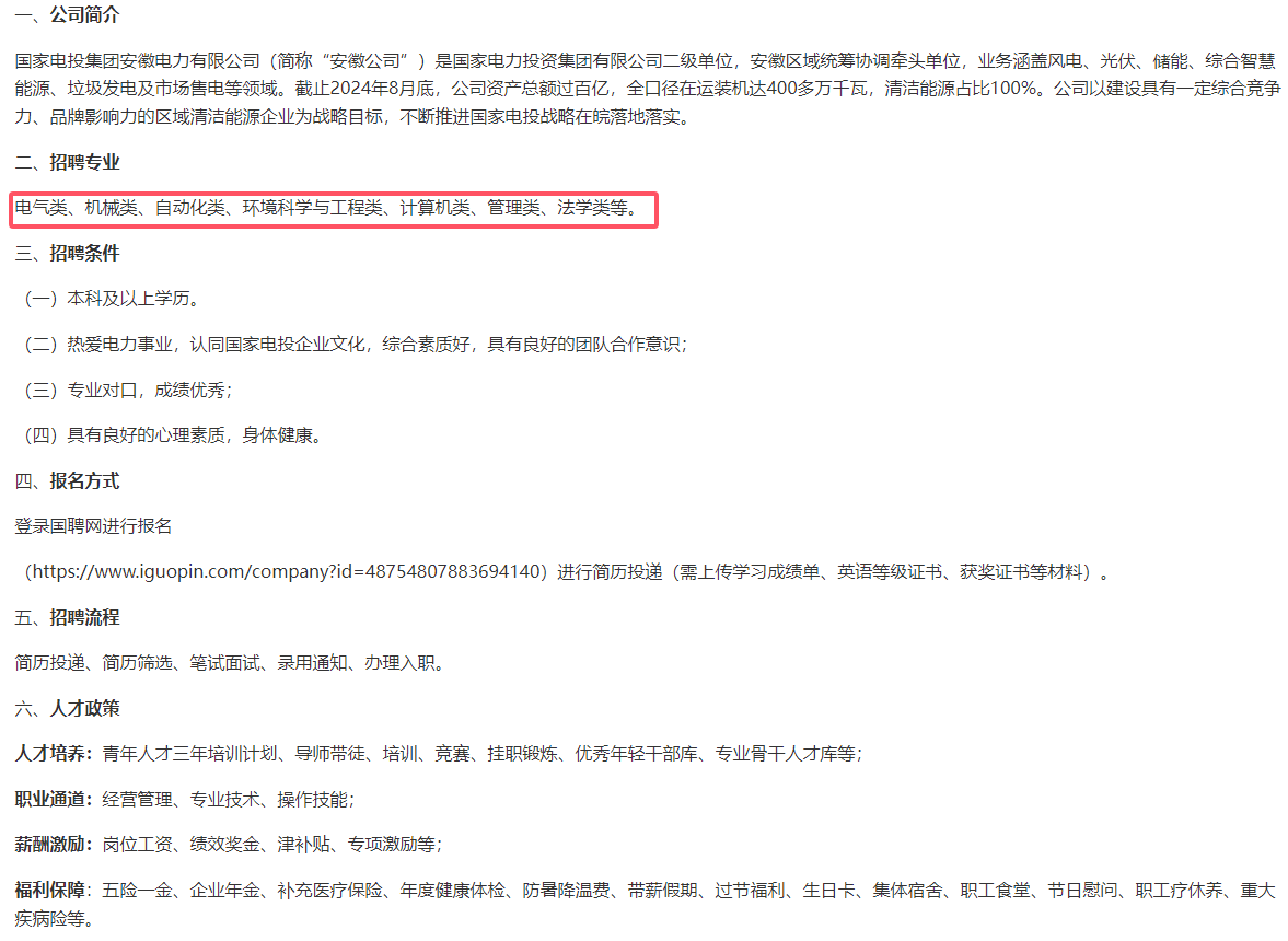> 国家电投集团安徽电力有限公司2025年度校园招聘公告