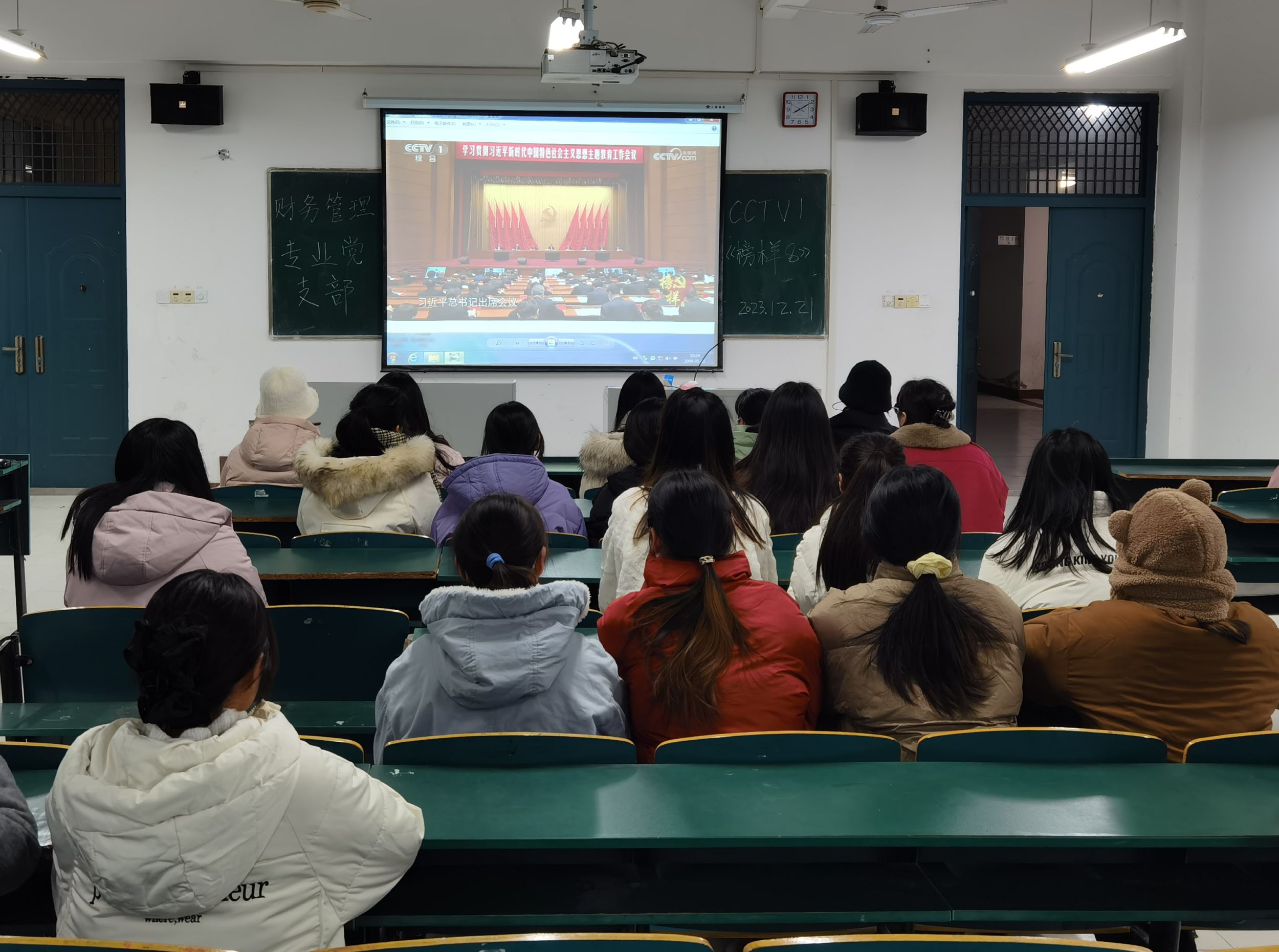 深入学习贯彻习近平新时代中国特色社会主义思想,教育引导广大师生党员学习榜样、争当先进,主动作为、担当有为。12月21日,中央组织部、中央学习贯彻习近平新时代中国特色社会主义思想主题教育领导小组办公室、中央广播电视总台联合制作的《榜样8》专题节目在中央电视台综合频道晚间8点档首播,经济系党总支组织师生党员通过集中观看等方式学习、交流。