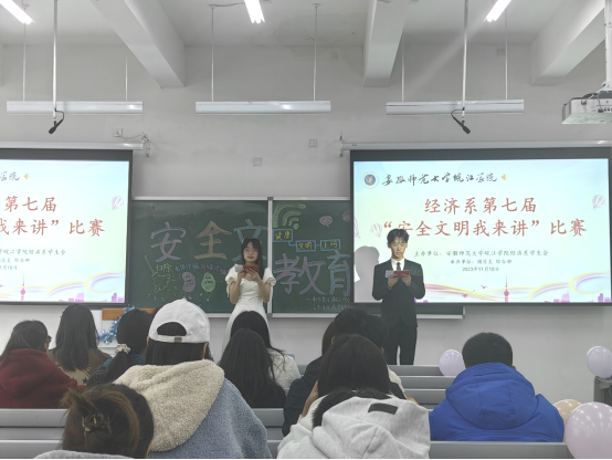 为增强同学们的安全防范意识,全面普及校园安全常识,经济系学生会于2023年11月10日12点在五栋A101成功组织开展了“安全文明教育我来讲”活动,全体学生会成员共同参加。