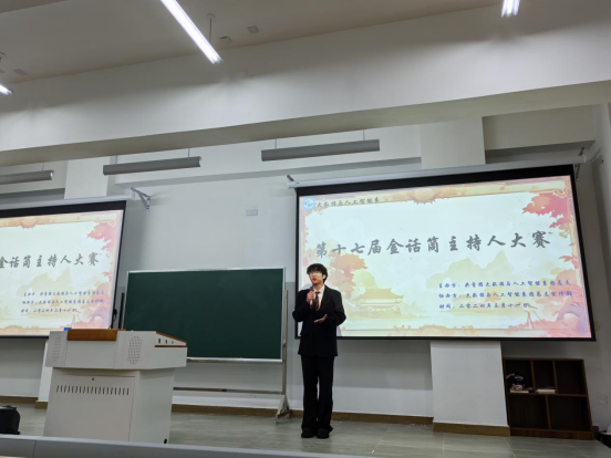 本网讯 近日,为丰富校园文化内涵,促进学生课余生活的多姿多彩,我系于3月11日晚六点半在五号教学楼A107隆重举行了第十七届金话筒主持人大赛。此次大赛特邀郭雅迪老师、刘杰老师和王轶超老师担任评委,共同见证了这场语言艺术的盛宴。