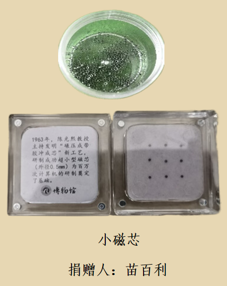 陈光熙先生1971年创造了“碾压成带,胶冲成芯”新工艺,制造出第一批适用于高速大容量存储器超小型毫米直径的记忆磁芯(直径1.2mm,高0.8mm),支持了我国高速度大容量存储器的研制以及晶体管计算机和早期小规模集成电路计算机的生产。