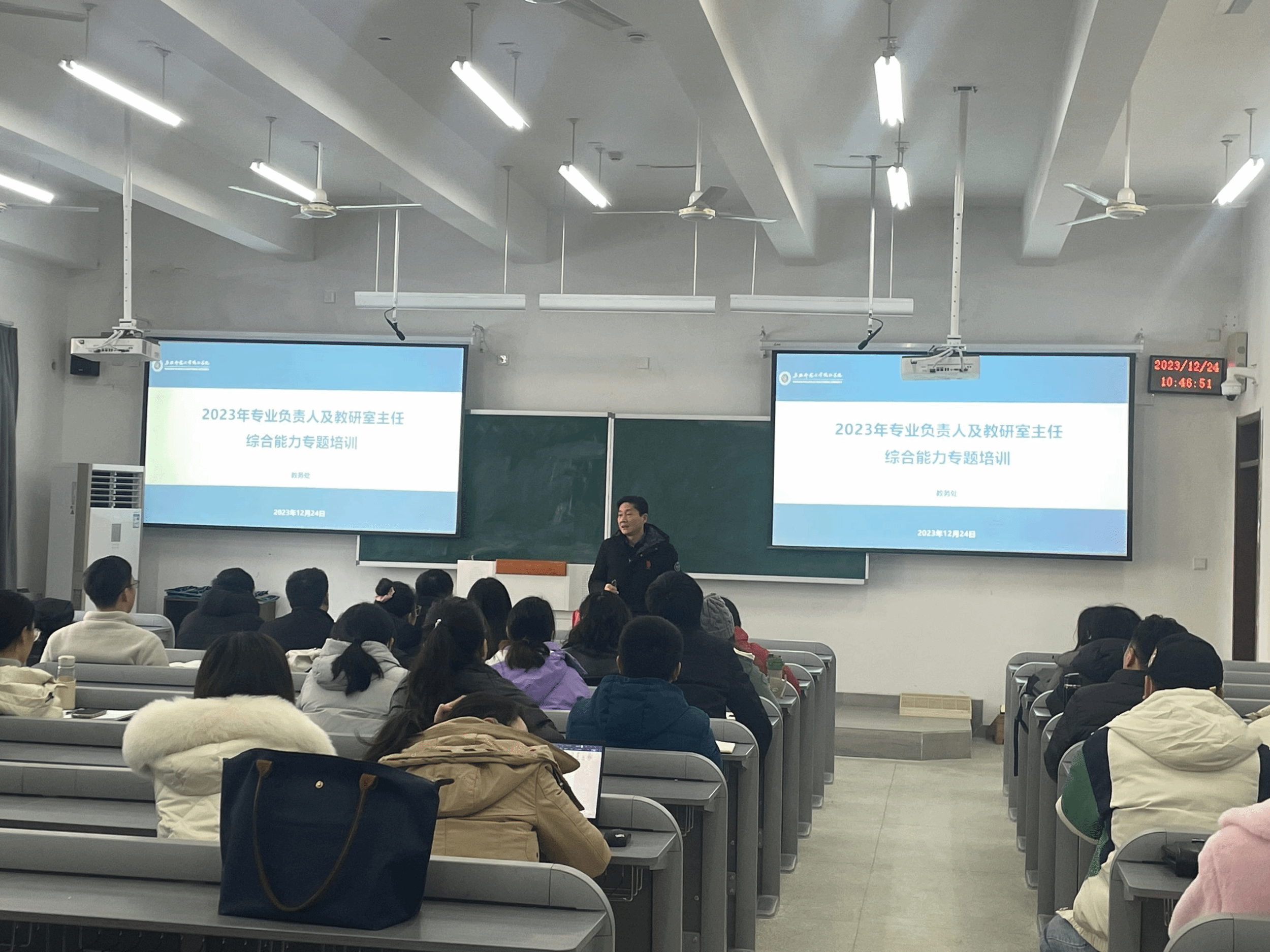 为充分发挥专业负责人和教研室主任在专业建设和人才培养工作中的组织和引领作用,进一步推进专业内涵建设,激发基层教学组织活力,12月24日上午,学院在江北校区5号楼B101组织开展专业负责人及教研室主任综合能力提升专题培训活动。