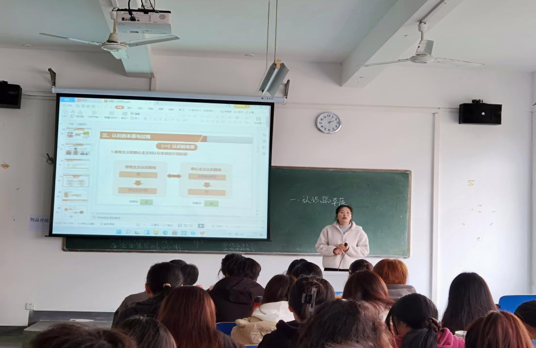 为了提高新教师的专业素养和教学能力,落实习近平总书记提出的“讲深、讲透、讲活”思想政治理论课的教学要求,帮助新教师更好的站住、站稳讲台。2022年11月15日下午,思政部举行了欧亚琴老师公开课教学活动,本次课程主题为《马克思主义基本原理》第三专题“实践与认识及其发展规律”。思政部李斐斐、伍小运、顾素敏、方宝华四位老师参与了本次公开课的观摩。