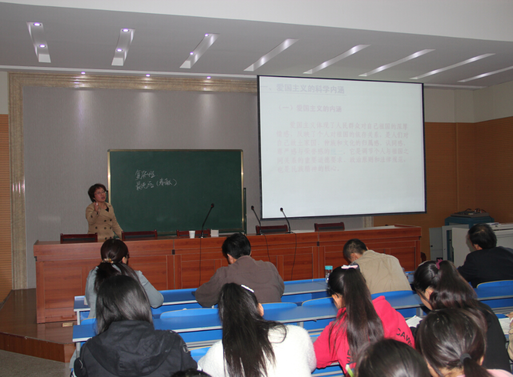 李老师讲授的是《爱国主义的科学内涵》内容。上课伊始,李老师首先带着全班同学对上节课所讲知识进行复习,让学生进入课堂的学习中。其次,他通过讲述吉卜赛人四处流浪的风俗引发学生思考什么是爱国主义,在学生的思考中她介绍了什么是爱国主义及爱国主义的主客观要求,她以汪精卫叛国为例来讲述在爱国中原则性错误不能犯,希望同学拥有爱国之情,效国之志和报国之行,做一个坚定忠诚的爱国者。最后,李老师和同学一起总结课堂上讲的主要内容。整堂课李老师声音洪亮,教态亲切,富有激情,师生互动融洽,课堂气氛活跃有趣。