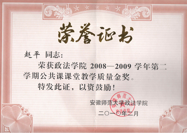 2010赵平校级教学质量金奖