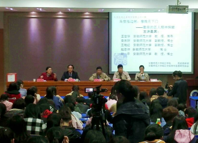 本网讯 4月6日晚七点,由我院思政部、青年思想研究协会联合举办“人文之光”系列讲座第二十一期在我院图书馆报告厅举行。安徽师范大学教授,博士生导师王世华、安徽师范大学教授,秦宗财、安徽师范大学副教授,王艳红、安徽师范大学博士赵忠仲,安徽师范大学教授、赵平应邀参加此次讲座。