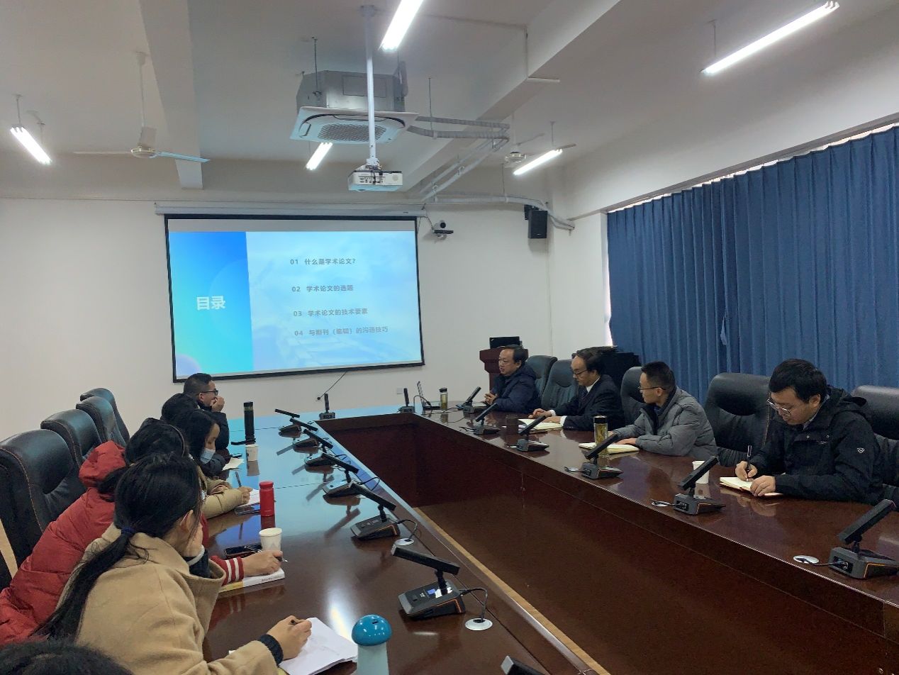 讲座中,汪沛从什么是学术论文、学术论文的选题、学术论文的技术要素以及与期刊编辑的沟通交流四个部分进行讲解。汪沛结合自身工作经历,运用丰富的案例,分享了学术论文写作的基本方法,深入浅出地讲解了论文选题的技巧、摘要和引言的写作方法、正文写作的注意事项、结语的撰写要求、参考文献的著录格式及选用建议、学术论文写作中应注意的问题以及如何与编辑进行沟通交流等内容。汪沛还与青年教师们进行了深入交流与探讨,耐心细致地解答了他们关于论文写作的疑惑。